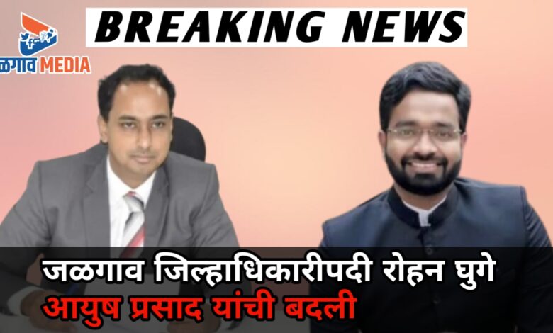 जळगाव जिल्हाधिकारीपदी रोहन घुगे आयुष प्रसाद यांची बदली