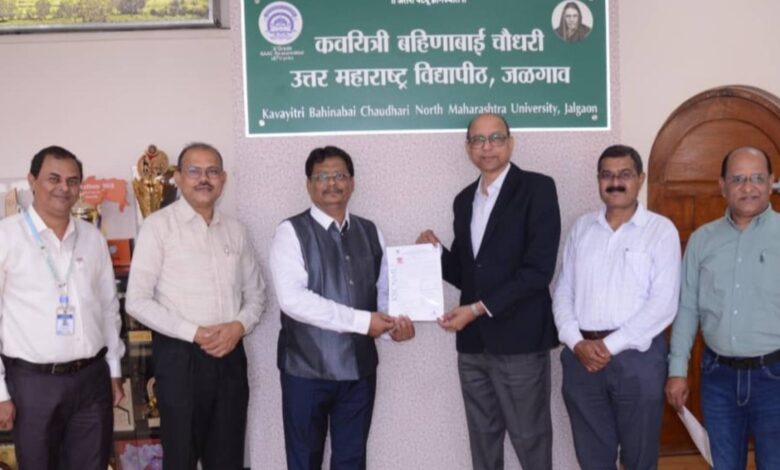 जळगाव, – कवयित्री बहिणाबाई चौधरी उत्तर महाराष्ट्र विद्यापिठातर्फे जळगाव येथील ज्येष्ठ पत्रकार दिलीप मनोरमा केशवलाल तिवारी यांना पीएच. डी. पदवी (डॉक्टर ऑफ फिलॉसॉफी अर्थात विद्यावाचस्पती) प्रदान करण्याचे पत्र (नोटीफिकेशन) आज प्रदान करण्यात आले. विद्यापिठाचे कुलगुरू प्रा. विजय माहेश्वरी यांच्या हस्ते श्री. तिवारी यांना याबाबत अधिकृत पत्र प्रदान करण्यात आले. यावेळी प्रकुलगुरू प्रा. एस. टी. इंगळे, व्यवस्थापन परिषद सदस्य राजेंद्र नन्नवरे, मार्गदर्शक प्रा. डाॅ. सुधीर भटकर, संशोधन विभागाचे सहायक कुलसचिव प्रविण चंदनकर, डाॅ. सोमनाथ वडनेरे, सुभाष तळेले उपस्थित होते.
